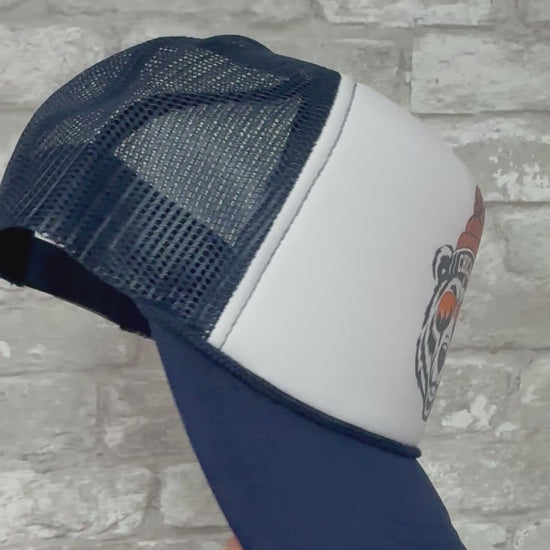 Put a bear on your head (not literally, of course) with this Bears Stocking Trucker Hat! Adjustable for a comfy fit, this cap comes in classic Navy or trendy Tan, all decked out with a colorful bear emblem. Perfect for keeping the sun out of your eyes while you channel your inner grizzly!