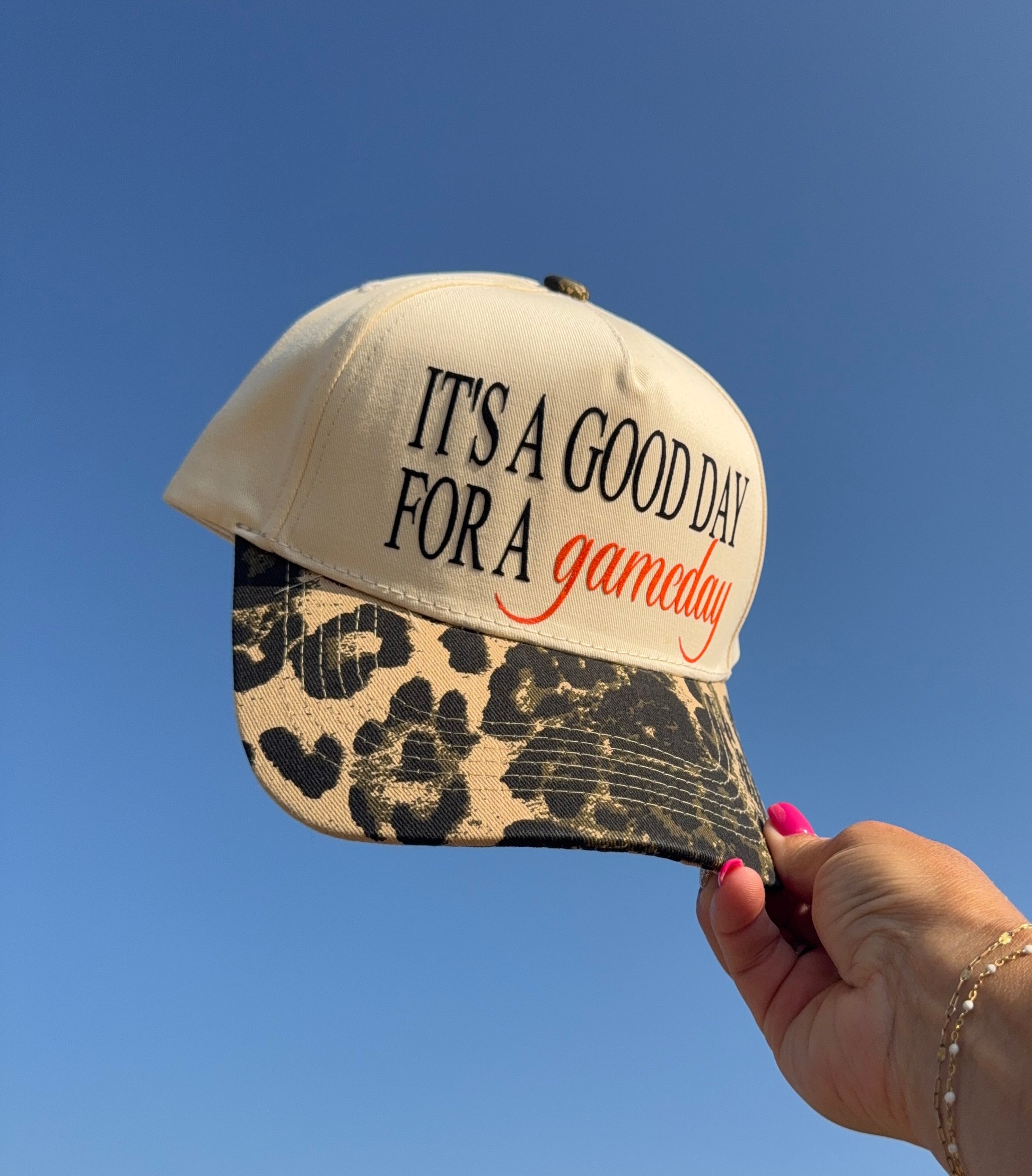 Show your school spirit in style with this adjustable leopard trucker hat, perfect for game day fun. Featuring a unique flock ink imprint, it adds a soft, textured look that stands out. Simply choose your school color to customize your "gameday" vibe and cheer on your team with flair and comfort.