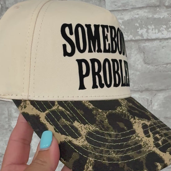 Unleash your wild side with Somebody's Problem! This adjustable back leopard hat is the perfect statement piece for any conversation. Take a risk and add some fun to your wardrobe with this bold and daring accessory. Embrace the adventure and be someone's problem today!